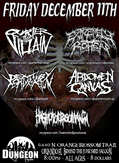 "It's been 10 years since we began supporting and promoting the Florida METAL Underground, and we would like to thank everyone who have shed their blood, sweat and tears in the name of Florida METAL. Raise your glasses and help us welcome in the '10 decade and open our ears to the next generation of metalheads who are destined to keep the FLorida METAL Flame alive!"